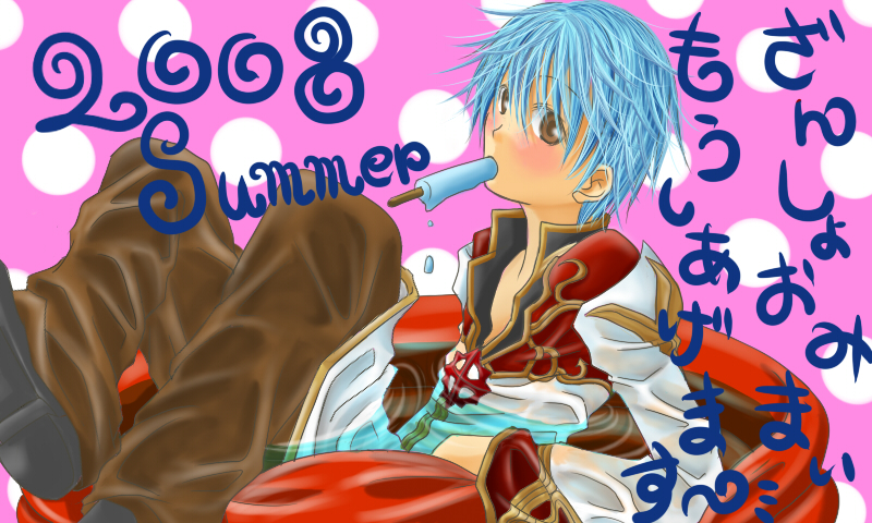 遅くなりました!orz 2008年度「残暑見舞」ですv 暑中見舞いにするつもりで7月に下書き描いたのにそれ以降進んでませんでした(ぶww 仕方ないので残暑見舞いで…← ROハイプリですっ 9月末までフリーですので宜しければ御自由にお持ち帰り下さいませv もしもサイト様で貼って戴ける場合にはサイト名or月峰から貰ったよーと明記下さると嬉しいですv 加工は拡大縮小御自由にどうぞv (しかし拡大には耐えられないと思われ(ノ∀`)← 毎度更新遅くてスミマセン(`・ω・´;) [PR] ヨガ